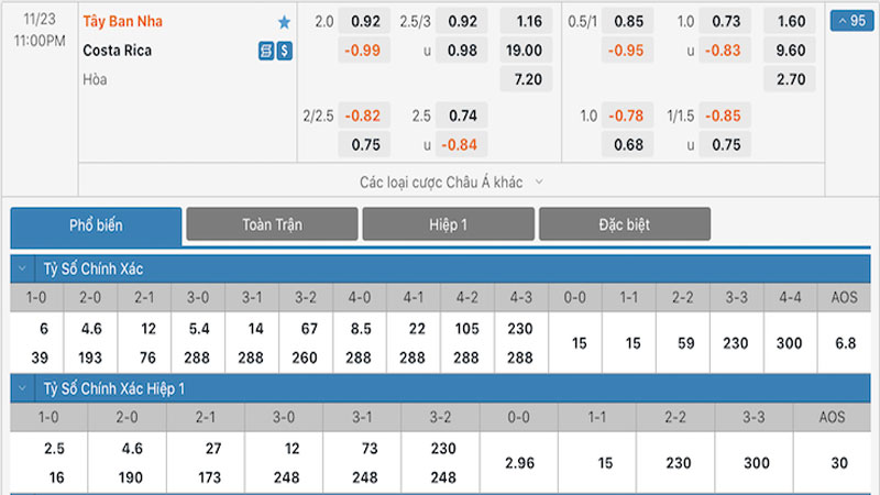 Tỷ lệ kèo giữa Tây Ban Nha vs Costa Rica