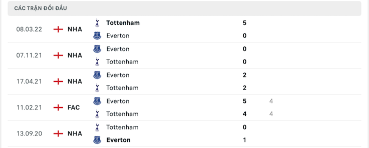 Tottenham vs Everton từng chạm trán nhiều lần ở giải Ngoại Hạng Anh. Thống kê 10 lần chạm trán gần nhất trong lịch sử đối đầu: Tottenham có được 4 chiến thắng, Everton thắng 1 và 5 trận có tỷ số Hòa. Có thể đánh giá sức mạnh và đẳng cấp của đội chủ nhà cao hơn đội khách. Tuy nhiên, tỷ lệ hòa cũng là rất cao. Thời điểm này, Tottenham vẫn là đội bóng vượt trội về phong độ, lại có lợi thế sân nhà. “Gà trống” thành London được dự đoán sẽ chiến thắng nhưng chỉ với 1 bàn cách biệt.