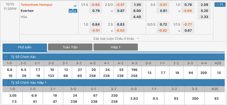 Tỷ lệ kèo giữa Tottenham vs Everton