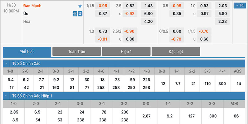 Tỷ lệ kèo giữa Úc vs Đan Mạch
