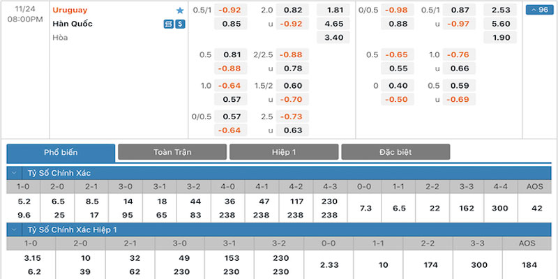 Tỷ lệ kèo giữa Uruguay vs Hàn Quốc
