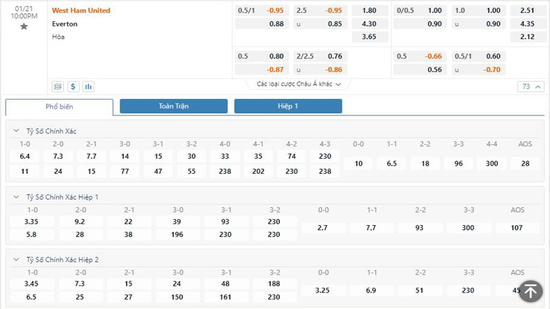 - Kèo Châu Âu: Chọn West Ham Thắng (Full Time)