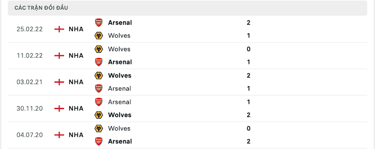 Trong 5 lần gần đây nhất 2 đội đụng độ nhau thì Arsenal vẫn đang chiếm ưu thế với 3 chiến thắng và 2 trận thua. Arsenal đang rất quyết tâm nối dài mạch thắng trước Wolves nhằm tiếp tục duy trì khoảng cách an toàn với đội bám đuổi. Với phong độ yếu kém cùng sự chênh lệch về mặt nhân sự không quá bất ngờ khi Wolves phải trắng tay ở màn đối đầu sắp tới đây. Việc phải đối đầu với một Arsenal đang quyết thắng nên cơ hội có điểm cho Wolves là không nhiều. Nhiều khả năng Wolves sẽ chọn cho mình lối đá tử thủ nhằm kiếm về một kết quả hòa. Bởi vậy, với chất lượng nhân sự trong đội hình các chuyên gia bóng đá tin vào một thắng lợi cho Arsenal ở màn đọ sức sắp tới đây.