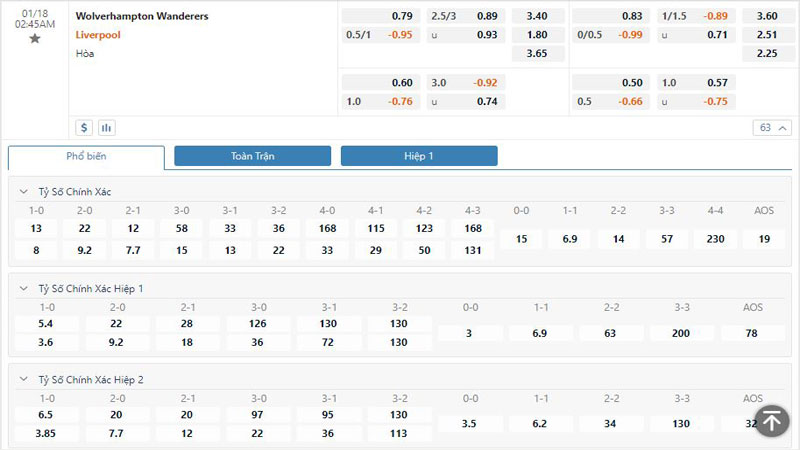 Tỷ lệ kèo giữa Wolves vs Liverpool