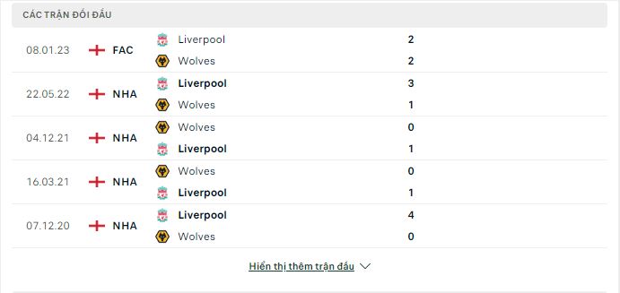 - Hiệp 1: Wolves 1 – 1 Liverpool