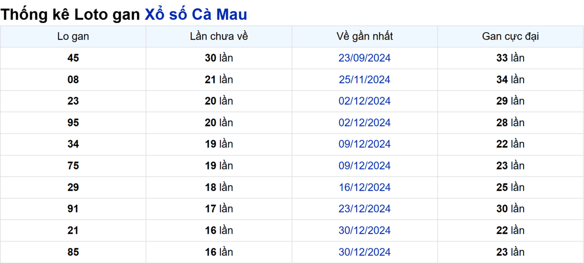 - Loto gan lâu chưa về Cà Mau: 45 – 08 – 23 – 95 – 34