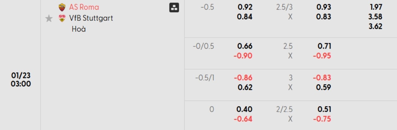 - Hiệp 1: Roma 0 – 0 Stuttgart
