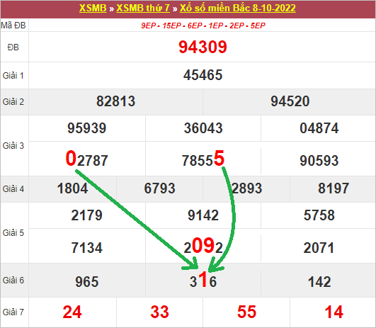 Phân tích bảng kết quả XSMB ngày 09/10/2022