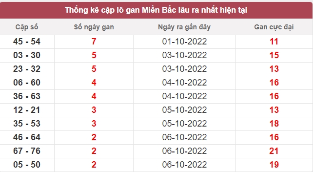 Bảng tổng hợp lô gan ngày 09/10/2022