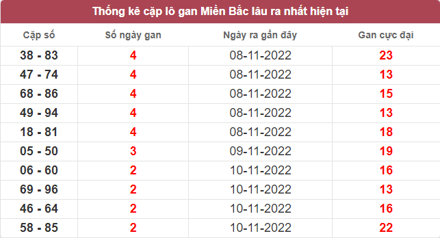 Bảng tổng hợp lô gan ngày 13/11/2022
