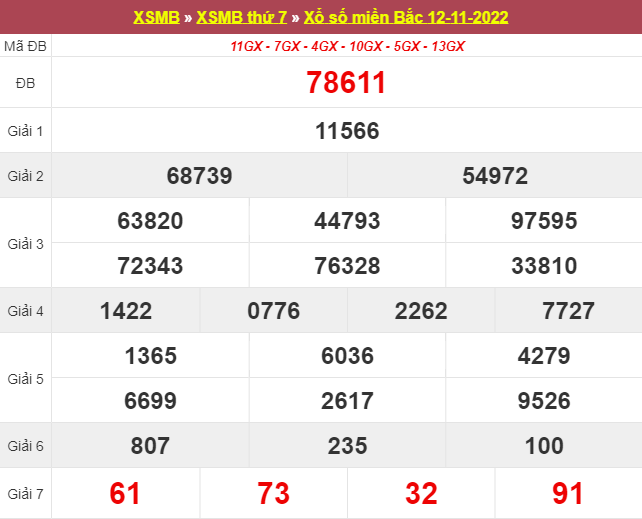 Phân tích bảng kết quả XSMB ngày 13/11/2022