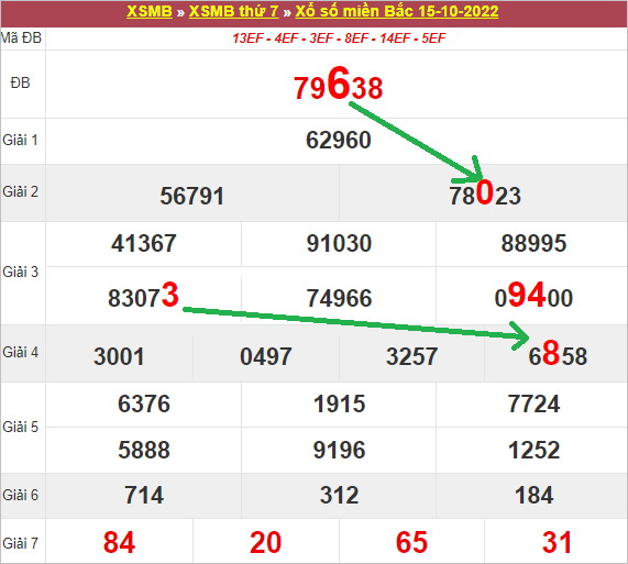 Giải đặc biệt về 79638 chạm 5 , 6 . Sau khi phân tích, theo dõi lại các tổng đề tuần trước thì các chuyên gia đã có nhận định cho hôm nay. Dàn đề hôm nay sẽ vào tổng 3,5,6,8. Anh em sẽ sử dụng âm dương ngũ hành cho những ngày tiếp theo, vào đều tay.