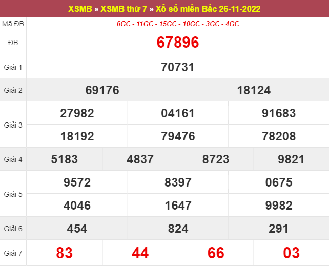 Phân tích bảng kết quả XSMB ngày 27/11/2022