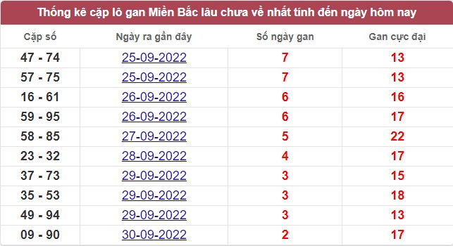 Bảng tổng hợp lô gan ngày 03/10/2022