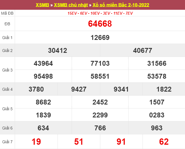 Phân tích bảng kết quả XSMB ngày 03/10/2022