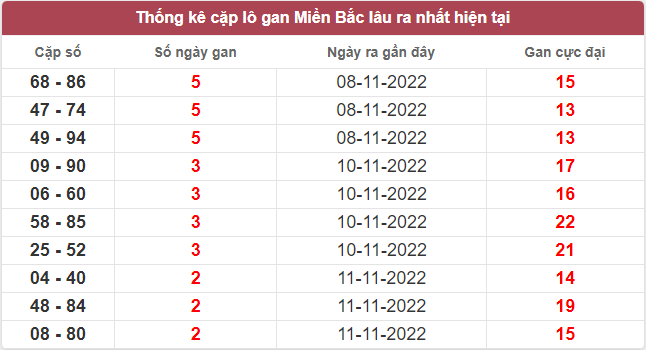 Bảng tổng hợp lô gan ngày 14/11/2022
