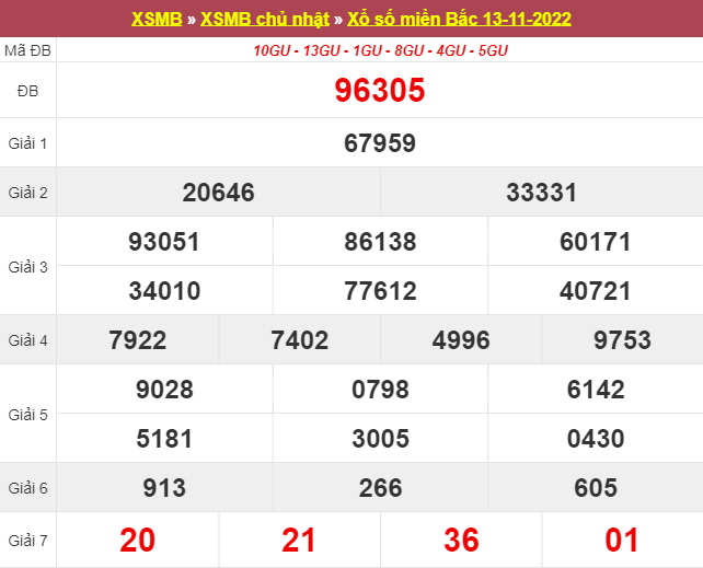 Phân tích bảng kết quả XSMB ngày 14/11/2022