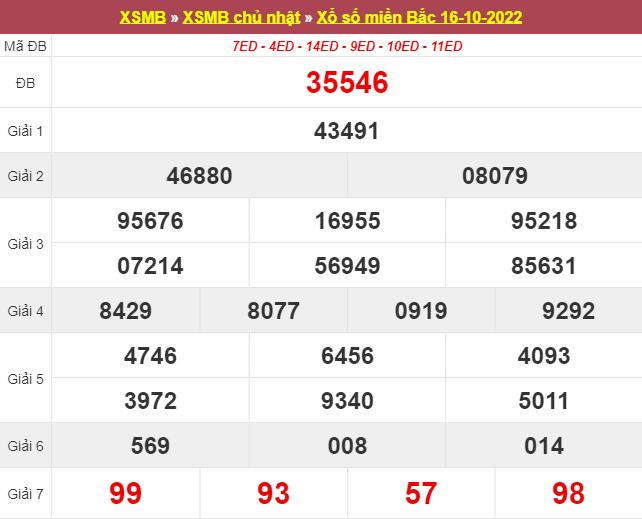 Kết quả xổ số ngày 16/10/2022