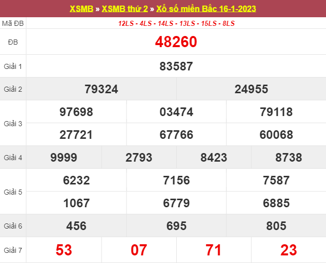 Phân tích bảng kết quả XSMB ngày 17/01/2023