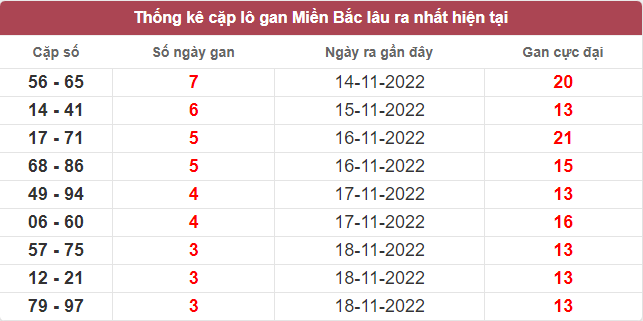 Bảng tổng hợp lô gan ngày 22/11/2022