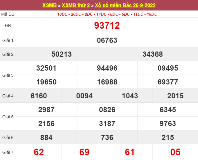 Phân tích bảng kết quả XSMB ngày 27/09/2022