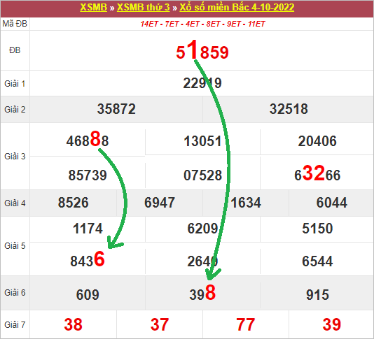 Phân tích bảng kết quả XSMB ngày 05/10/2022