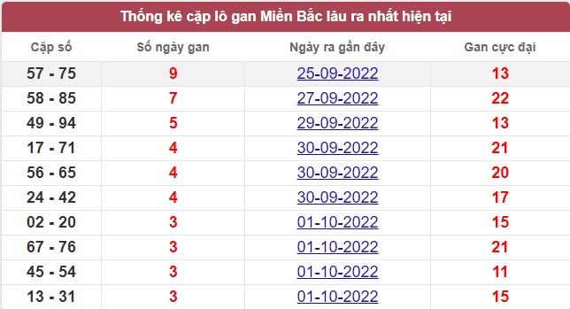 Bảng tổng hợp lô gan ngày 05/10/2022