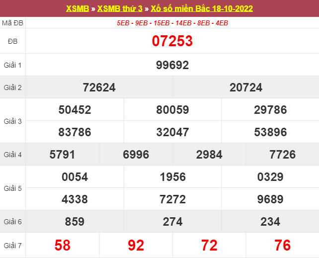 Phân tích bảng kết quả XSMB ngày 19/10/2022