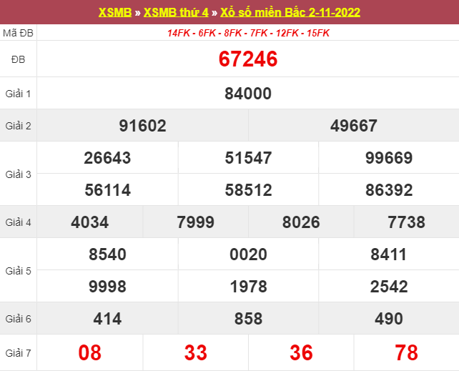 Phân tích bảng kết quả XSMB ngày 03/11/2022