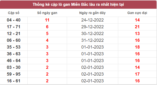 Bảng tổng hợp lô gan ngày 05/01/2023