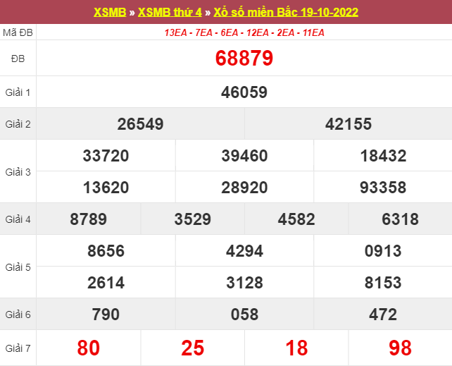 Phân tích bảng kết quả XSMB ngày 20/10/2022