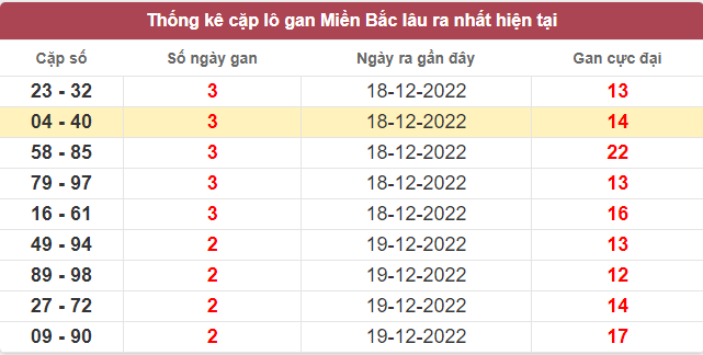Bảng tổng hợp lô gan ngày 22/12/2022