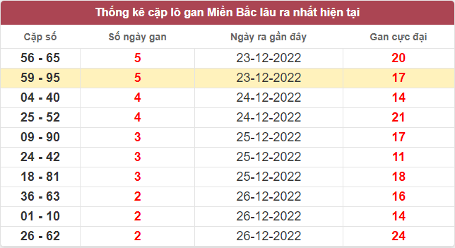 Bảng tổng hợp lô gan ngày 29/12/2022