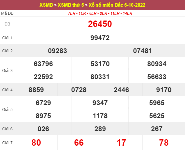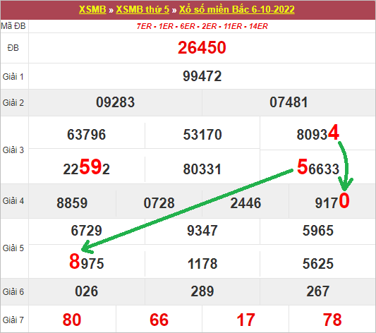 Phân tích bảng kết quả XSMB ngày 07/10/2022