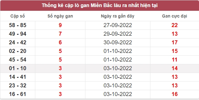 Bảng tổng hợp lô gan ngày 07/10/2022