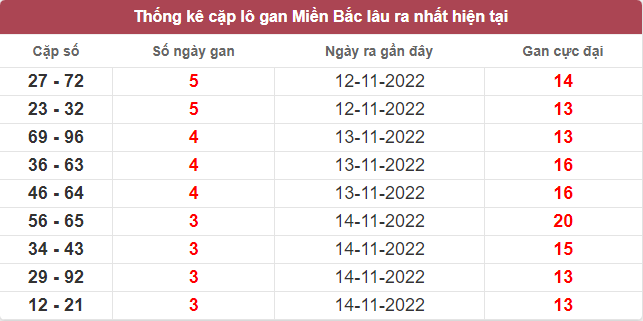Bảng tổng hợp lô gan ngày 18/11/2022