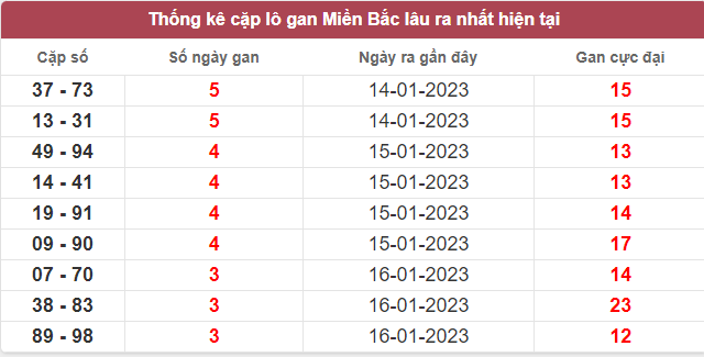 Bảng tổng hợp lô gan ngày 20/01/2023