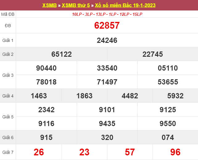 Phân tích bảng kết quả XSMB ngày 20/01/2023
