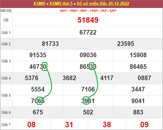Phân tích bảng kết quả XSMB ngày 30/12/2022