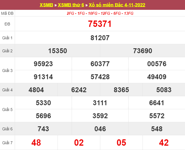 Phân tích bảng kết quả XSMB ngày 05/11/2022