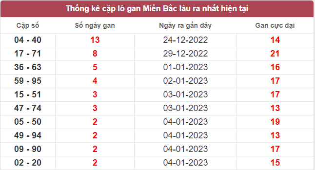 Bảng tổng hợp lô gan ngày 07/01/2023
