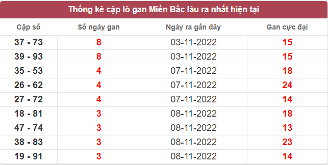 Bảng tổng hợp lô gan ngày 12/11/2022