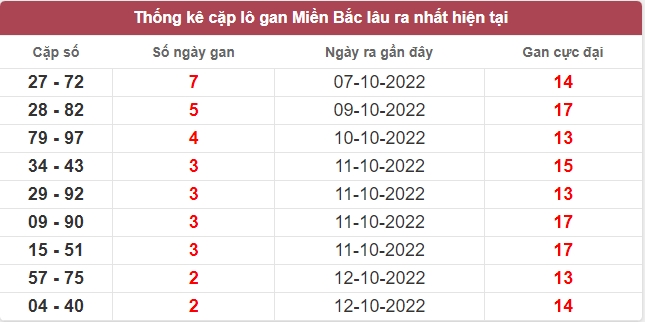 Bảng tổng hợp lô gan ngày 15/10/2022