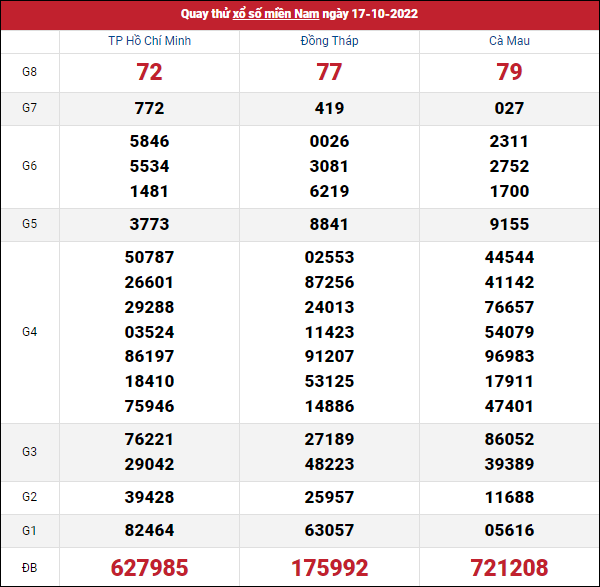Các bài viết dự đoán XSMN của Zbet đã được kiểm nghiệm từ rất nhiều cao thủ và chuyên gia trong giới lô đề. Kết quả soi cầu XSMN 17/10/2022 có tỉ lệ chính xác lên đến gần 100%. Hy vọng những cặp số mà chúng tôi dự đoán sẽ giúp tất cả anh chị em gần xa trên mọi miền tổ quốc đại phát tài.