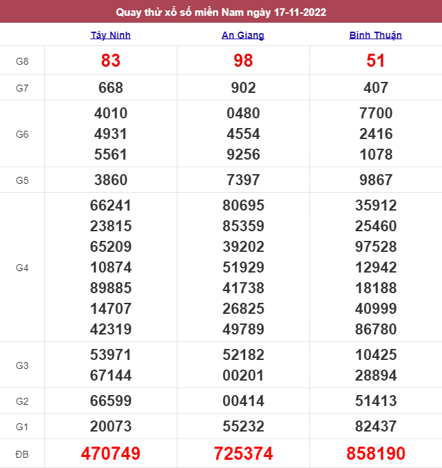 Các bài viết dự đoán XSMN của Zbet đã được kiểm nghiệm từ rất nhiều cao thủ và chuyên gia trong giới lô đề. Kết quả soi cầu XSMN 17/11/2022 có tỉ lệ chính xác lên đến gần 100%. Hy vọng những cặp số mà chúng tôi dự đoán sẽ giúp tất cả anh chị em gần xa trên mọi miền tổ quốc đại phát tài.