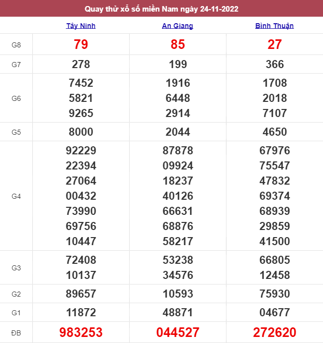 Các bài viết dự đoán XSMN của Zbet đã được kiểm nghiệm từ rất nhiều cao thủ và chuyên gia trong giới lô đề. Kết quả soi cầu XSMN 24/11/2022 có tỉ lệ chính xác lên đến gần 100%. Hy vọng những cặp số mà chúng tôi dự đoán sẽ giúp tất cả anh chị em gần xa trên mọi miền tổ quốc đại phát tài.