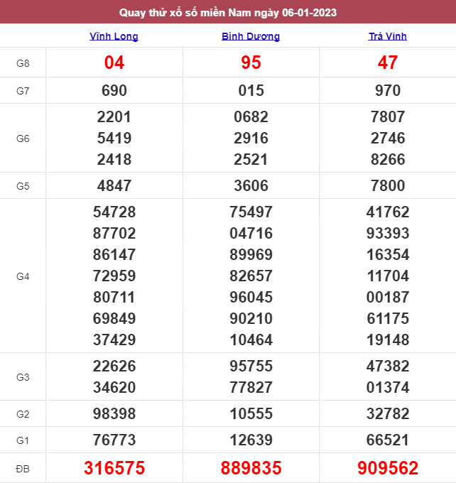 Các bài viết dự đoán XSMN của Zbet đã được kiểm nghiệm từ rất nhiều cao thủ và chuyên gia trong giới lô đề. Kết quả soi cầu XSMN 06/01/2023 có tỉ lệ chính xác lên đến gần 100%. Hy vọng những cặp số mà chúng tôi dự đoán sẽ giúp tất cả anh chị em gần xa trên mọi miền tổ quốc đại phát tài.