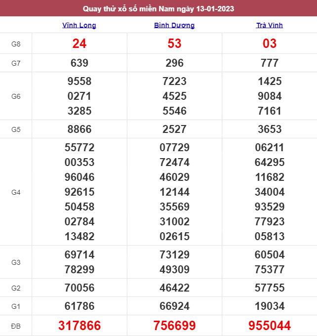 Các bài viết dự đoán XSMN của Zbet đã được kiểm nghiệm từ rất nhiều cao thủ và chuyên gia trong giới lô đề. Kết quả soi cầu XSMN 13/01/2023 có tỉ lệ chính xác lên đến gần 100%. Hy vọng những cặp số mà chúng tôi dự đoán sẽ giúp tất cả anh chị em gần xa trên mọi miền tổ quốc đại phát tài.