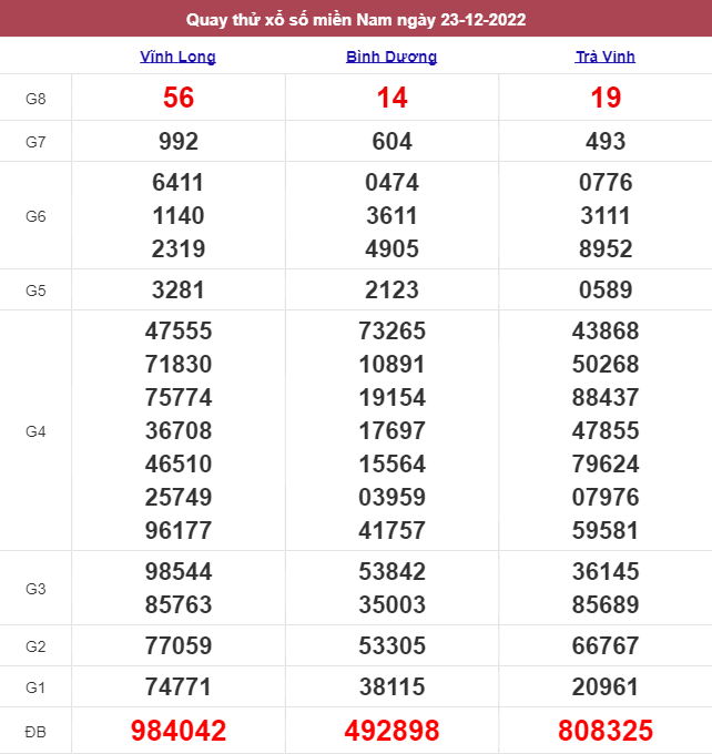 Các bài viết dự đoán XSMN của Zbet đã được kiểm nghiệm từ rất nhiều cao thủ và chuyên gia trong giới lô đề. Kết quả soi cầu XSMN 23/12/2022 có tỉ lệ chính xác lên đến gần 100%. Hy vọng những cặp số mà chúng tôi dự đoán sẽ giúp tất cả anh chị em gần xa trên mọi miền tổ quốc đại phát tài.