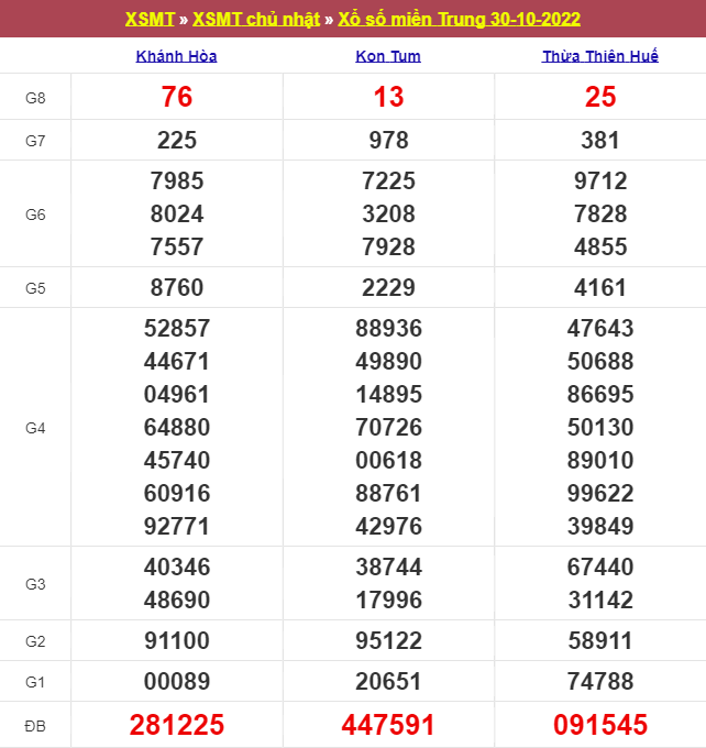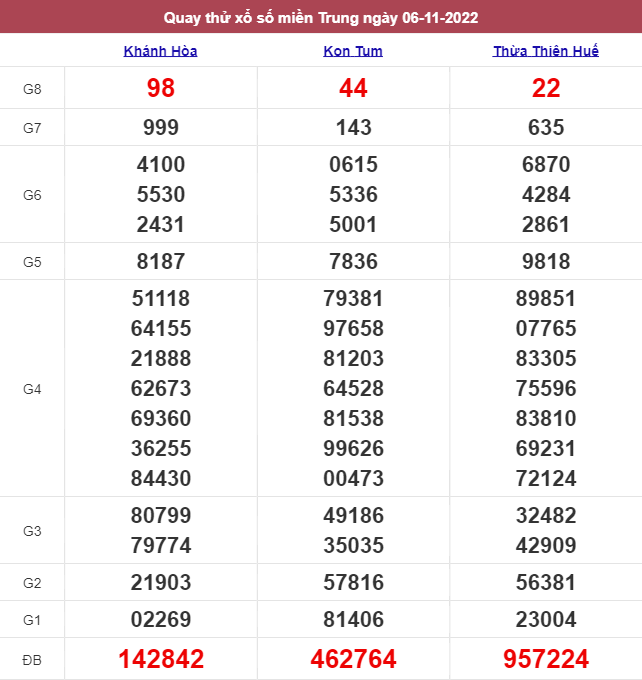 Giải đặc biệt đài Kon Tum ngày 06/11/2022